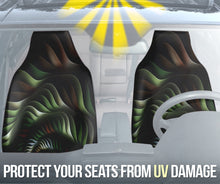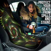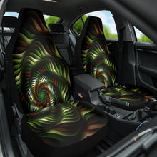 Our Green and Brown Spiral Car Seat Covers are tailor-made and crafted with care to stand the test of time. Softly woven polyester micro-fiber fabric provides comfort and shielding from spills, stains, and tearing. Effortlessly installed on most car and SUV bucket-seats (no tools required!), the elastic backing and buckling system ensure a snuggly fit. So, style it up 'n shield it up—just remember, not for use on airbag, seatbelts, or armrest-equipped seats!