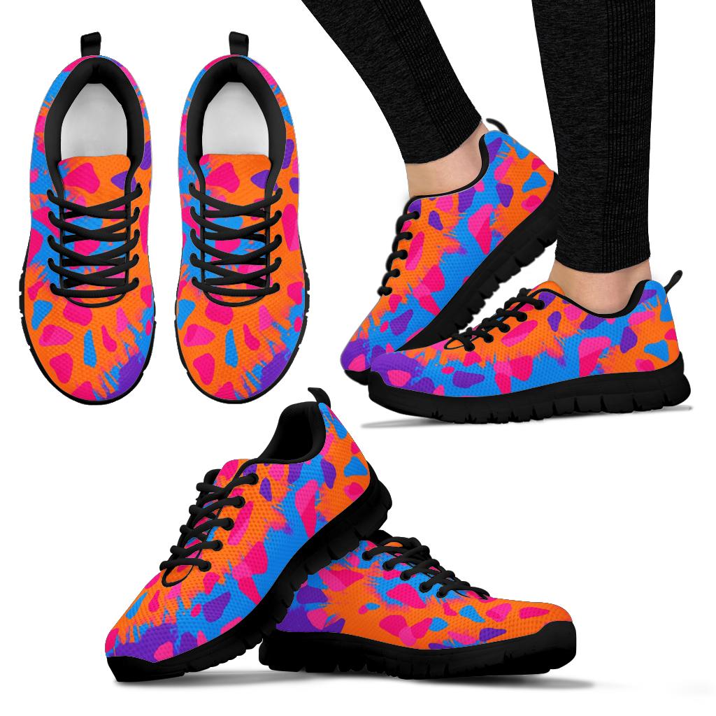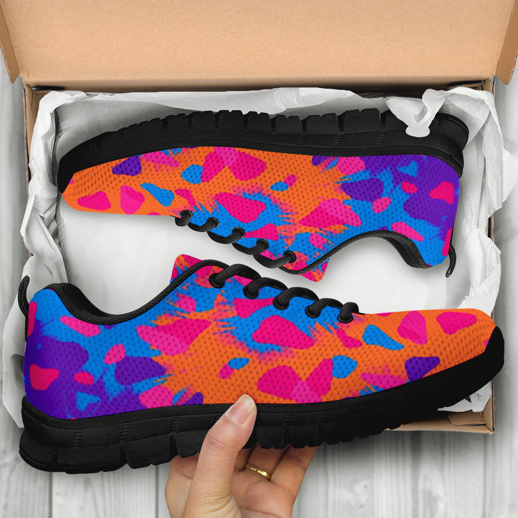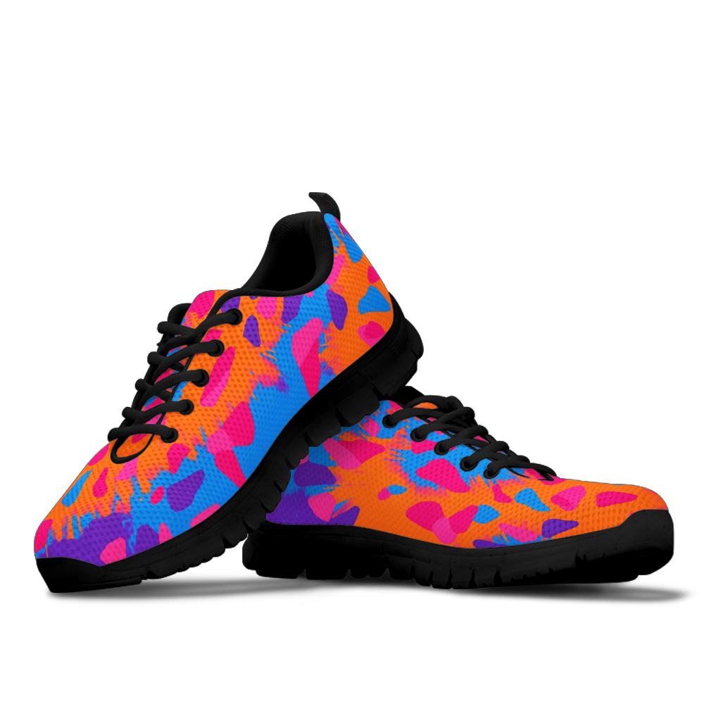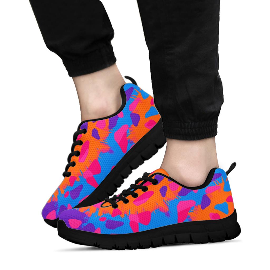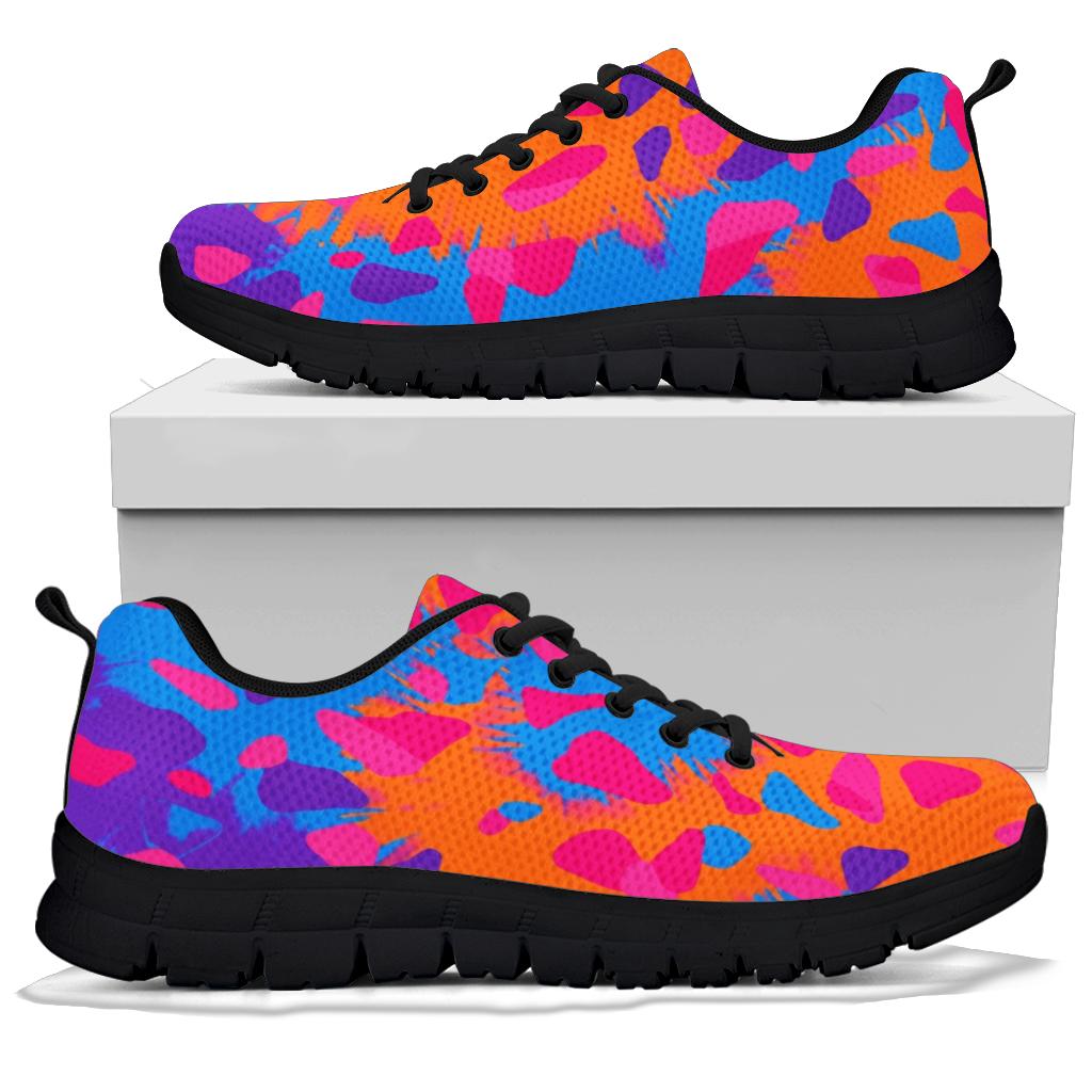Step out boldly with these Color Splash Sneakers, where art meets comfort. Featuring an energetic splatter pattern in vivid shades of blue, pink, orange, purple, and white, these sneakers bring an expressive and playful vibe to your everyday style.