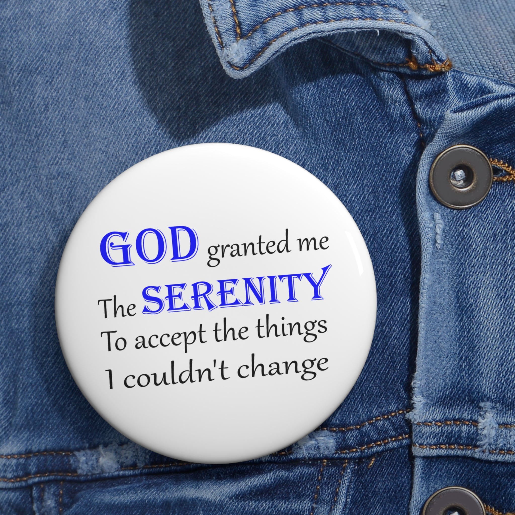 Carry a gentle reminder of strength and acceptance wherever you go with this uplifting “God gave me the serenity to accept the things I couldn’t change” pin button. Designed with soft, vibrant color and clean lettering, it adds a peaceful yet powerful message to jackets, backpacks, totes, and hats.