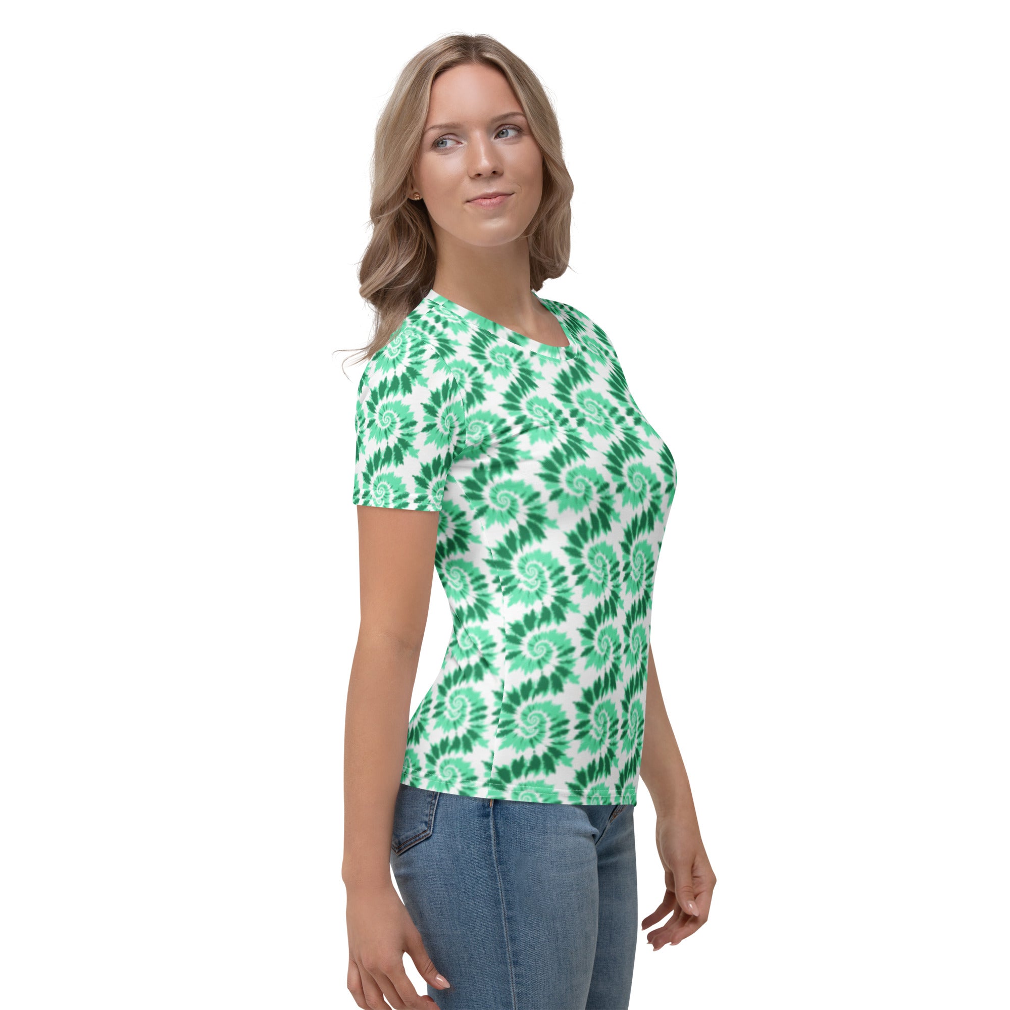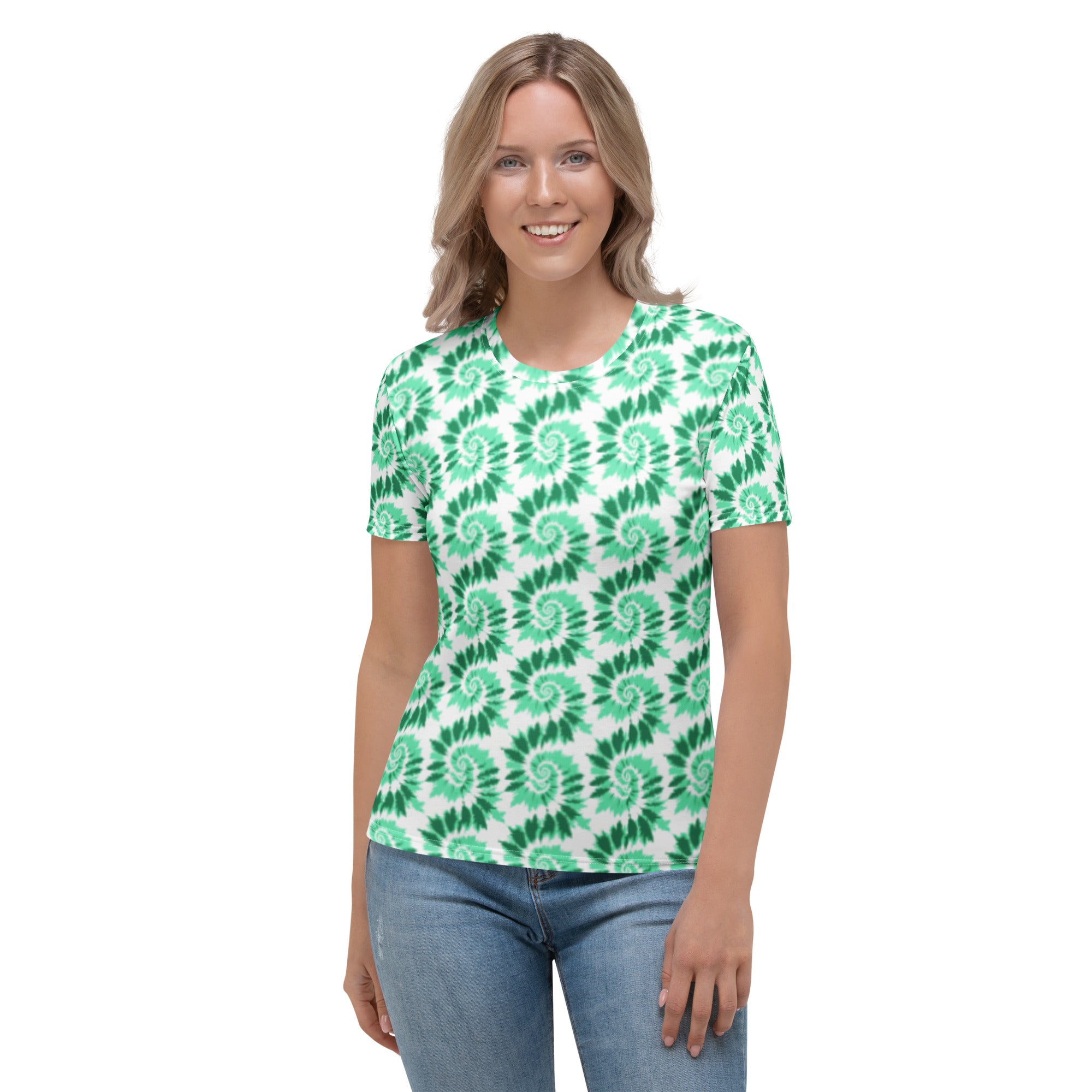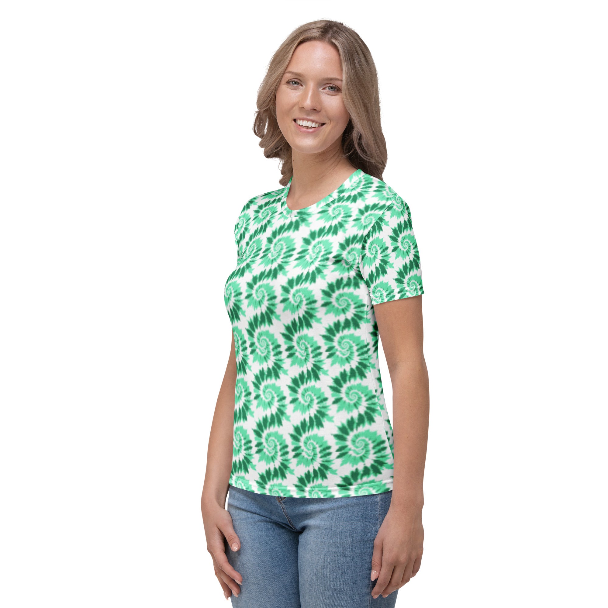 Bring a burst of freshness to your wardrobe with this White and Green Spiral Tie-Dye T-Shirt—a perfect blend of comfort, style, and durability. Designed with a vibrant green spiral pattern on a crisp white background, this tee adds a relaxed yet energetic vibe to your everyday look.