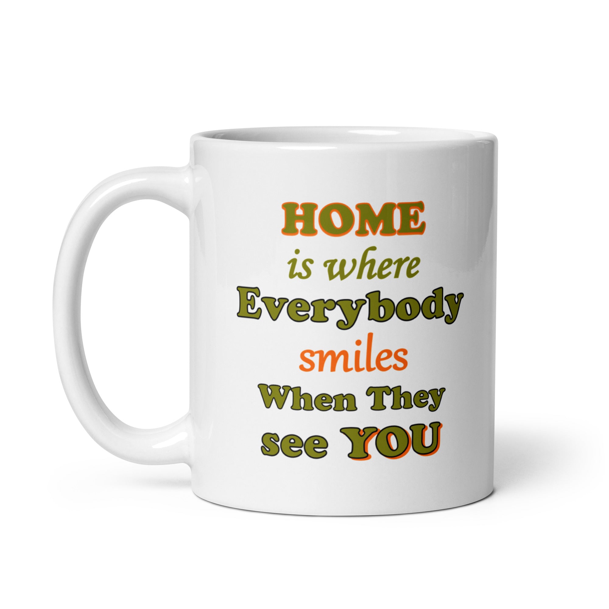 Start every day with a reminder of warmth, belonging, and love. This 11oz ceramic coffee mug features the heartfelt message “Home is where everybody smiles when they see you,” making it a perfect addition to cozy mornings and meaningful moments.