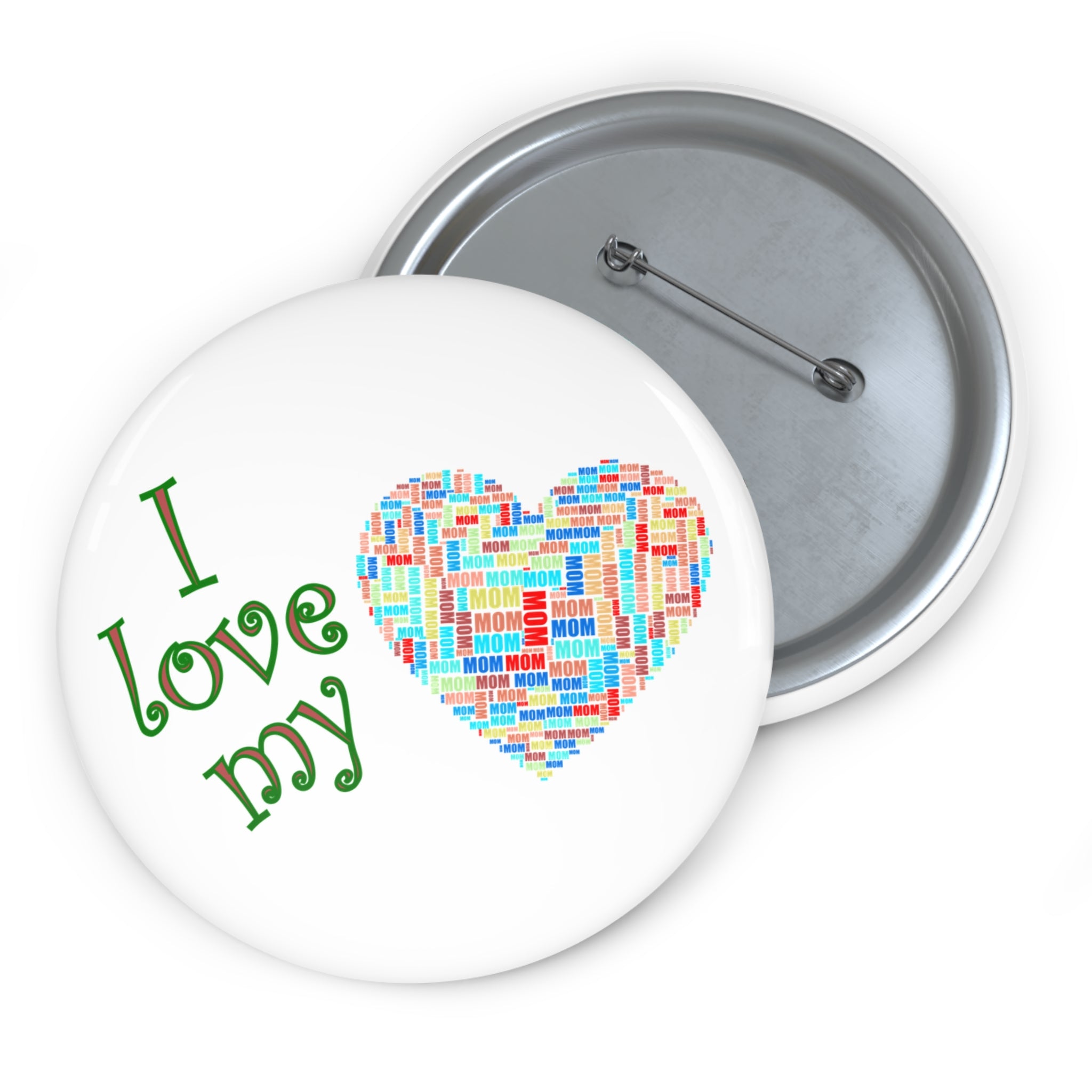 Celebrate Mom in the most colorful way with this sweet and vibrant “I love my ♥” pin. The heart is filled edge-to-edge with the word “mom” written in multiple colors, directions, and playful styles—creating a joyful mosaic of love that feels personal, warm, and full of appreciation.