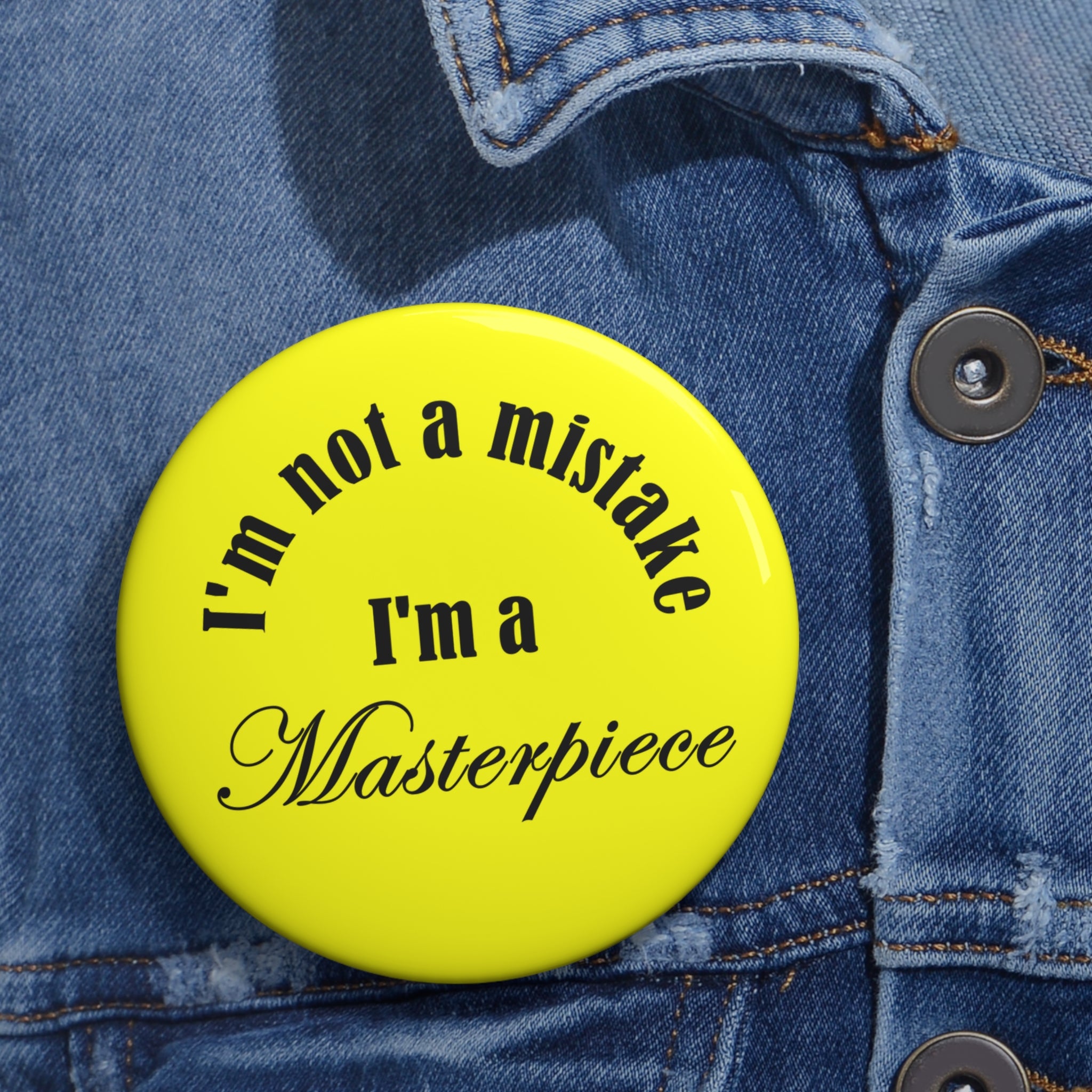 Celebrate confidence, courage, and self-worth with this bold “I’m not a mistake, I’m a masterpiece” pin button. Set on a bright, cheerful yellow background, this badge radiates positivity and serves as a gentle reminder that everyone carries value, purpose, and unique brilliance.