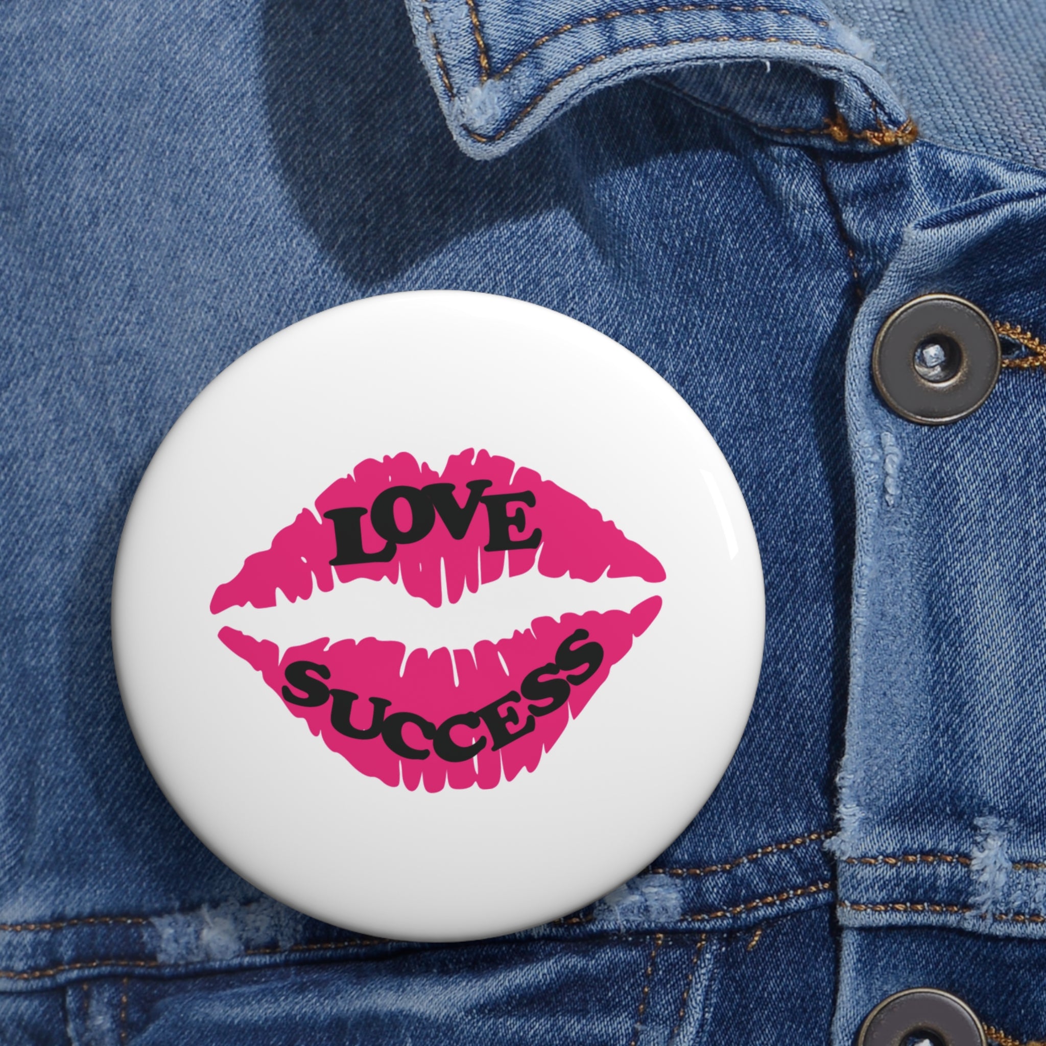 Send (or wear!) a little blessing with this sweet and stylish “Love & Success” pin. Featuring bold pink lips and the uplifting words LOVE and SUCCESS, this design playfully represents someone offering you a kiss filled with good wishes.
