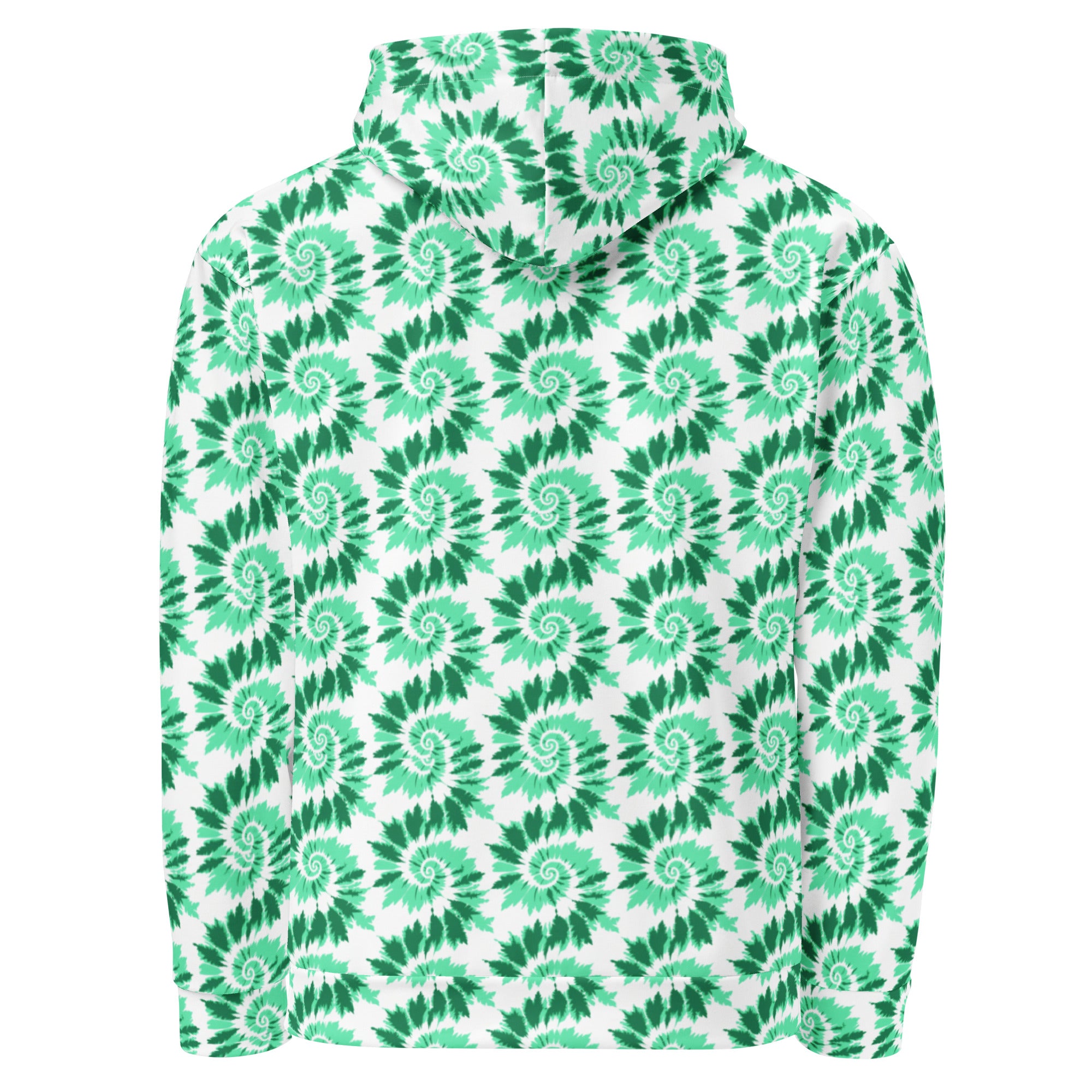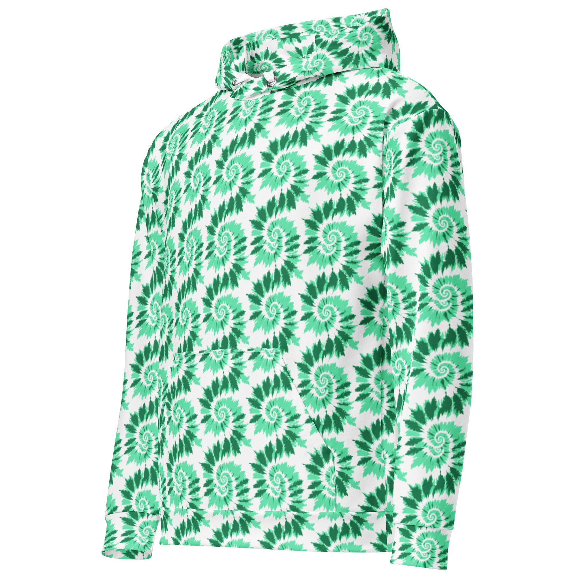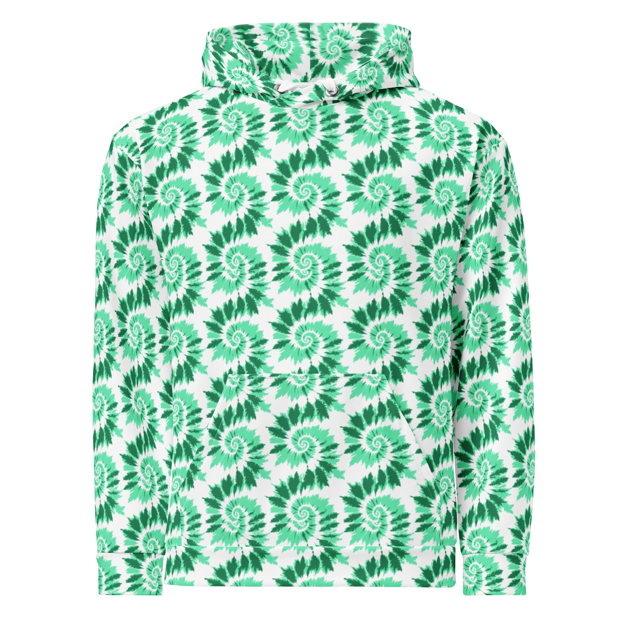 Embrace color, comfort, and eco-conscious fashion with this all-over print green tie-dye hoodie—where relaxation meets style.