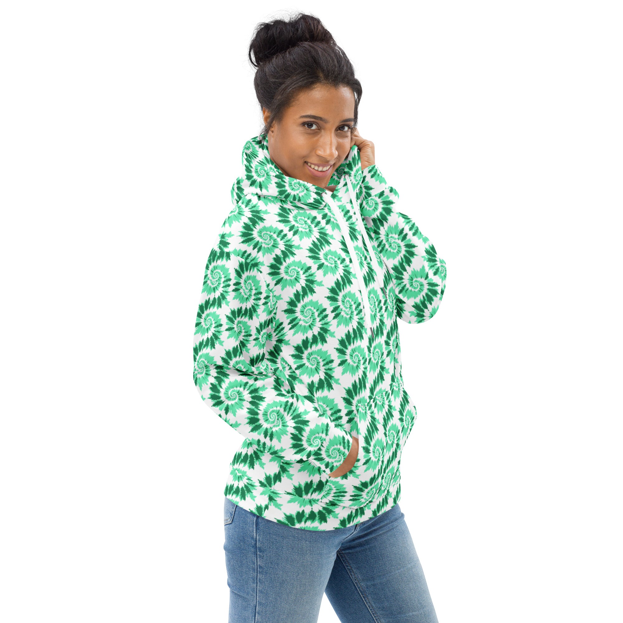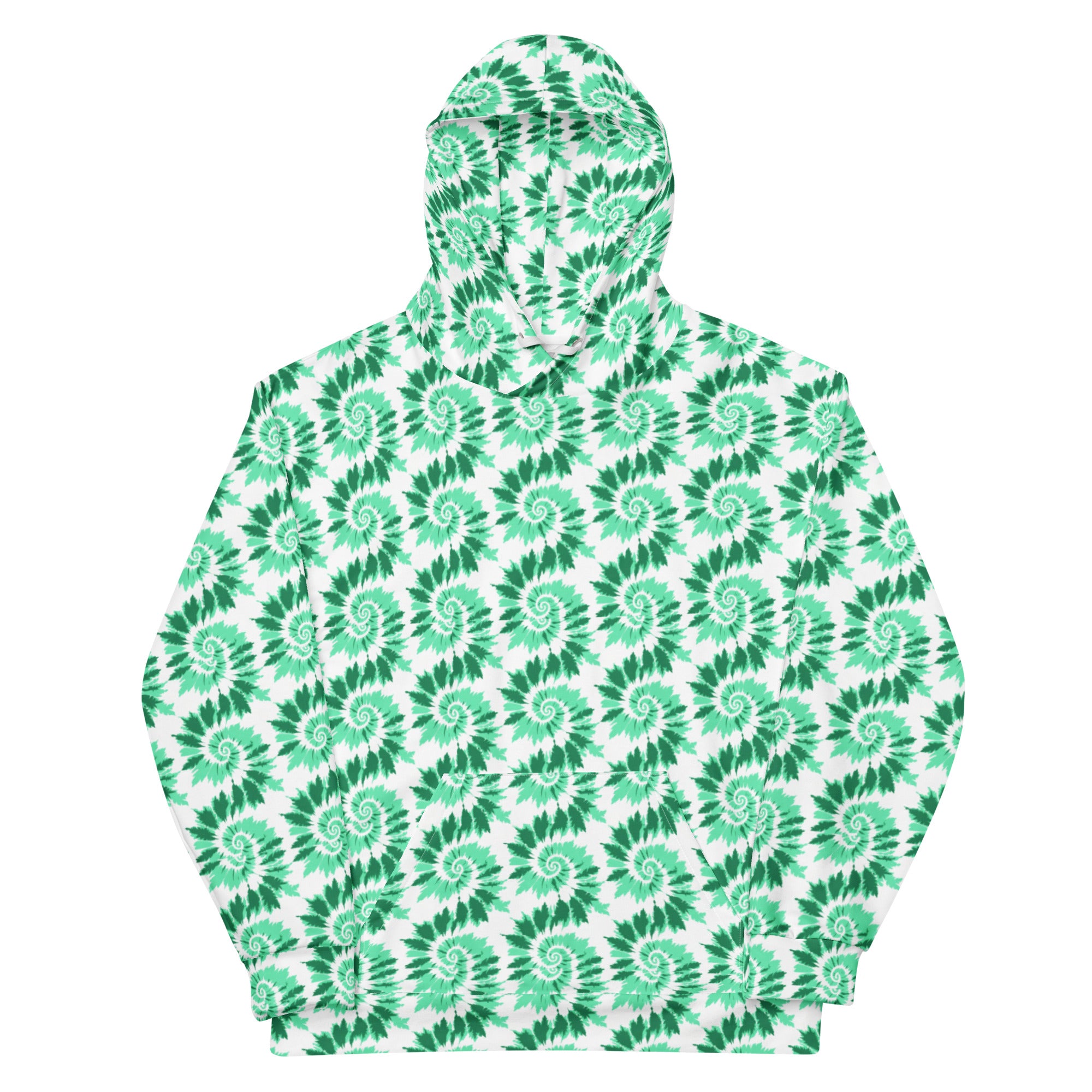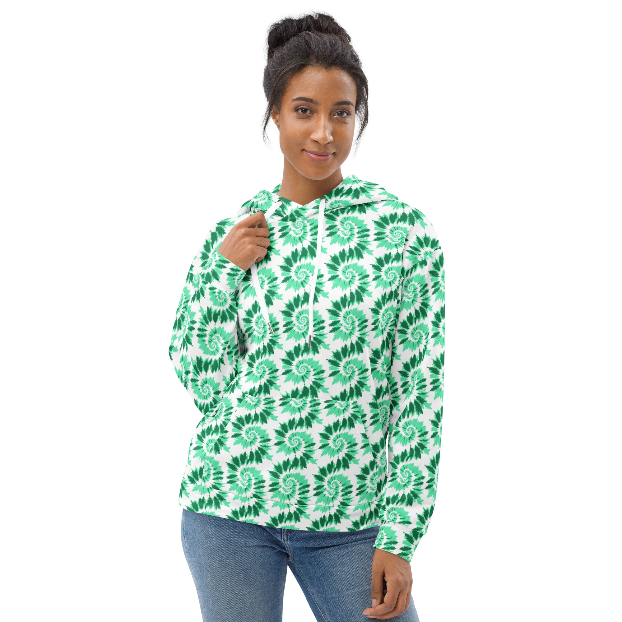 Wrap yourself in comfort and creativity with the Mint Swirl Unisex Hoodie, featuring a striking green tie-dye spiral pattern on a crisp white base. Designed for those who love a mix of cozy comfort and artistic flair, this hoodie is soft to the touch on the outside and lined with brushed fleece inside for unbeatable warmth and relaxation.