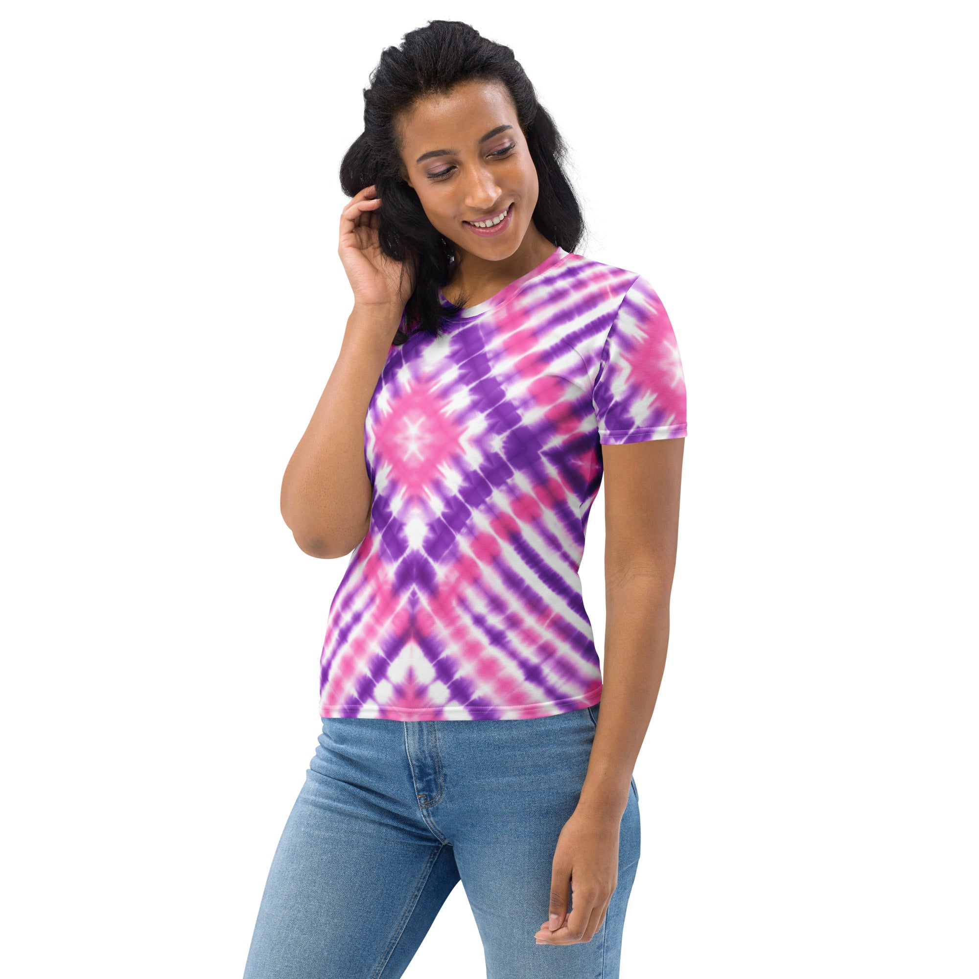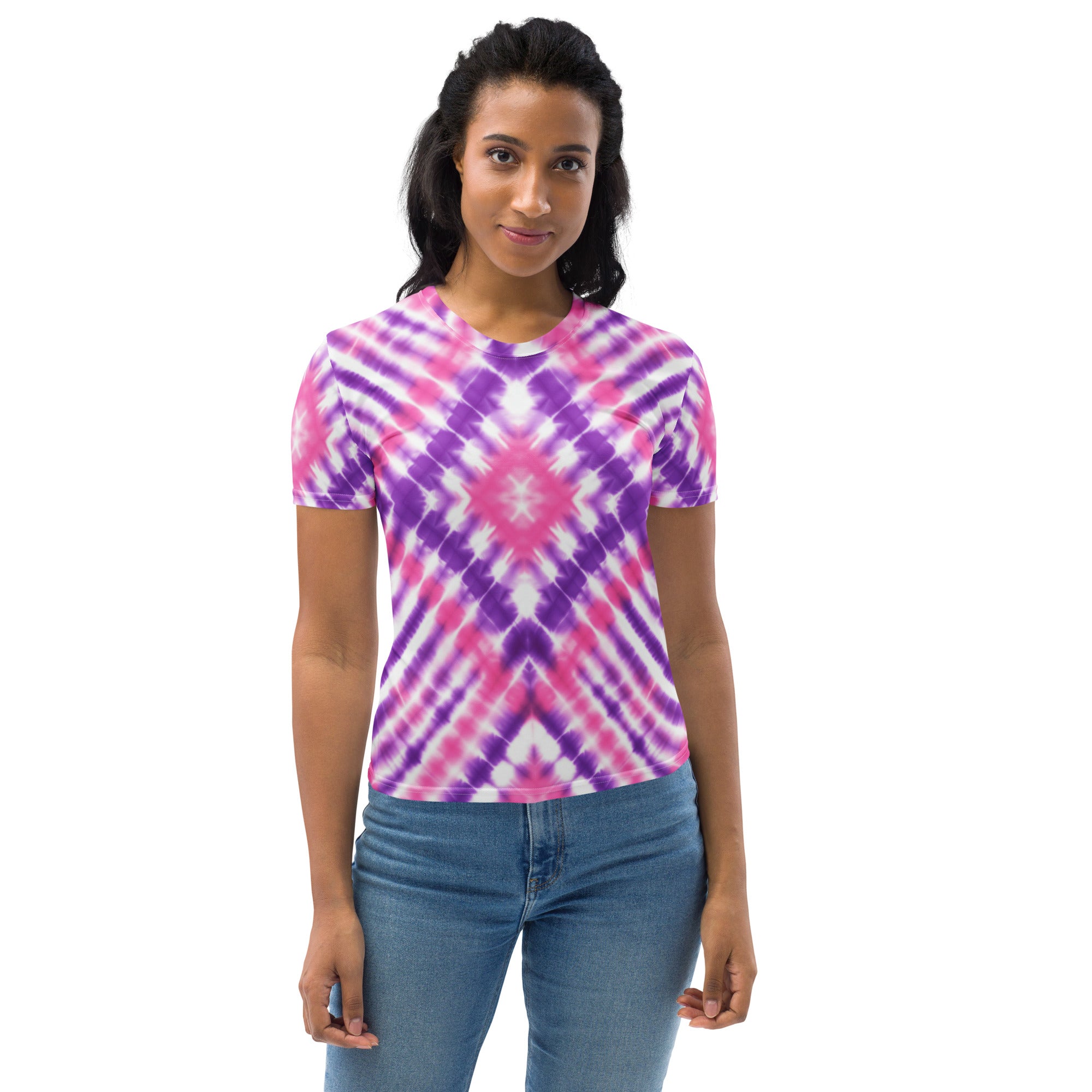 Make a bold yet elegant statement with this Pink and Purple Tie-Dye Diamond T-Shirt featuring a large, eye-catching diamond pattern that radiates from the center like wearable art. The soft fusion of pink and purple hues creates a modern, feminine look that’s both vibrant and relaxing — perfect for expressing your unique sense of style.