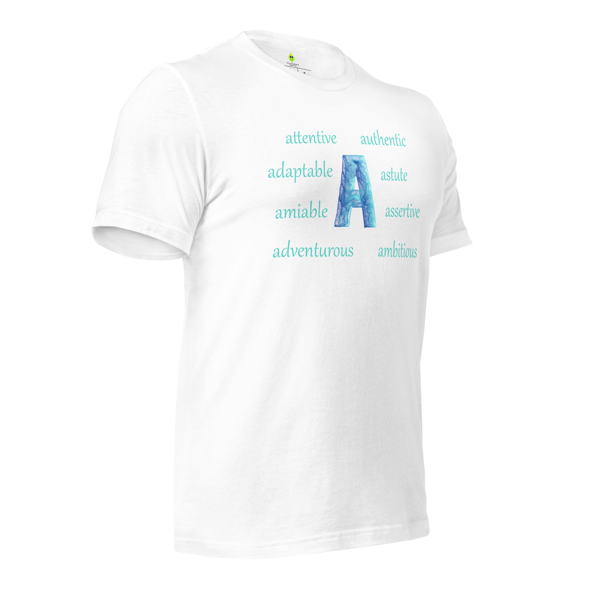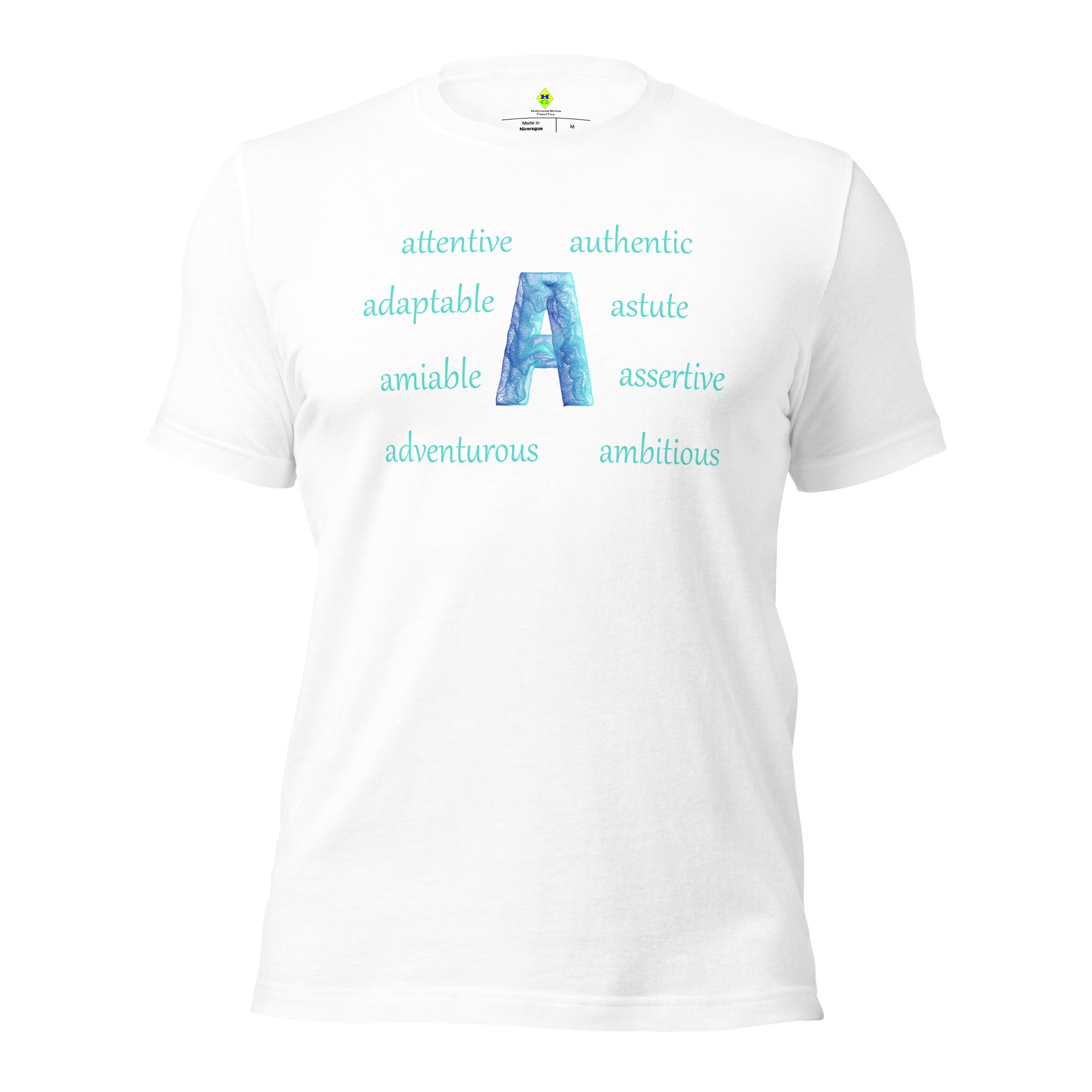 Boost confidence and spread positivity with this empowering Positive “A” Words t-shirt. Featuring the letter A surrounded by uplifting words that inspire self-esteem, mental wellness, and inner strength, this tee is designed to motivate both the wearer and everyone who sees it.