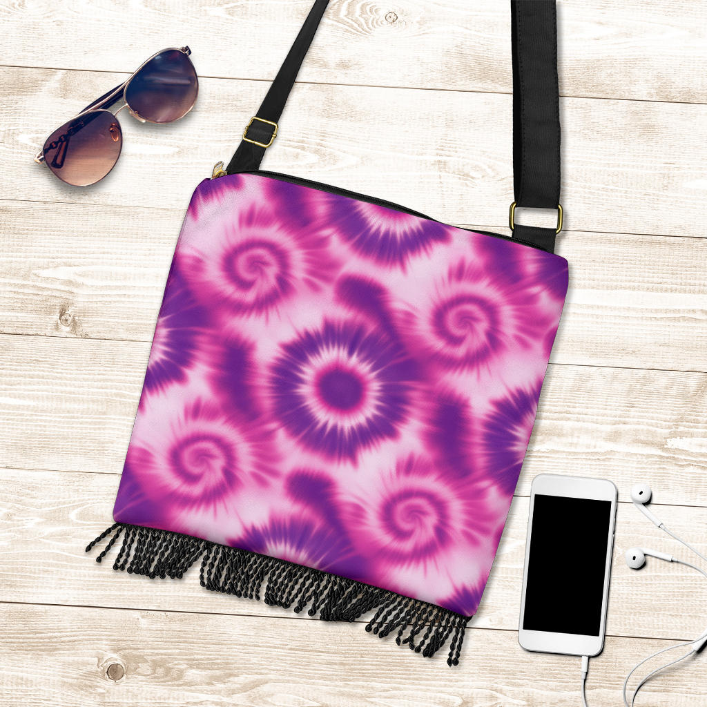 The Purple and Pink Tie-Dye Boho Crossbody Bag is where artistic charm meets everyday practicality—a perfect match for free spirits and color lovers alike.