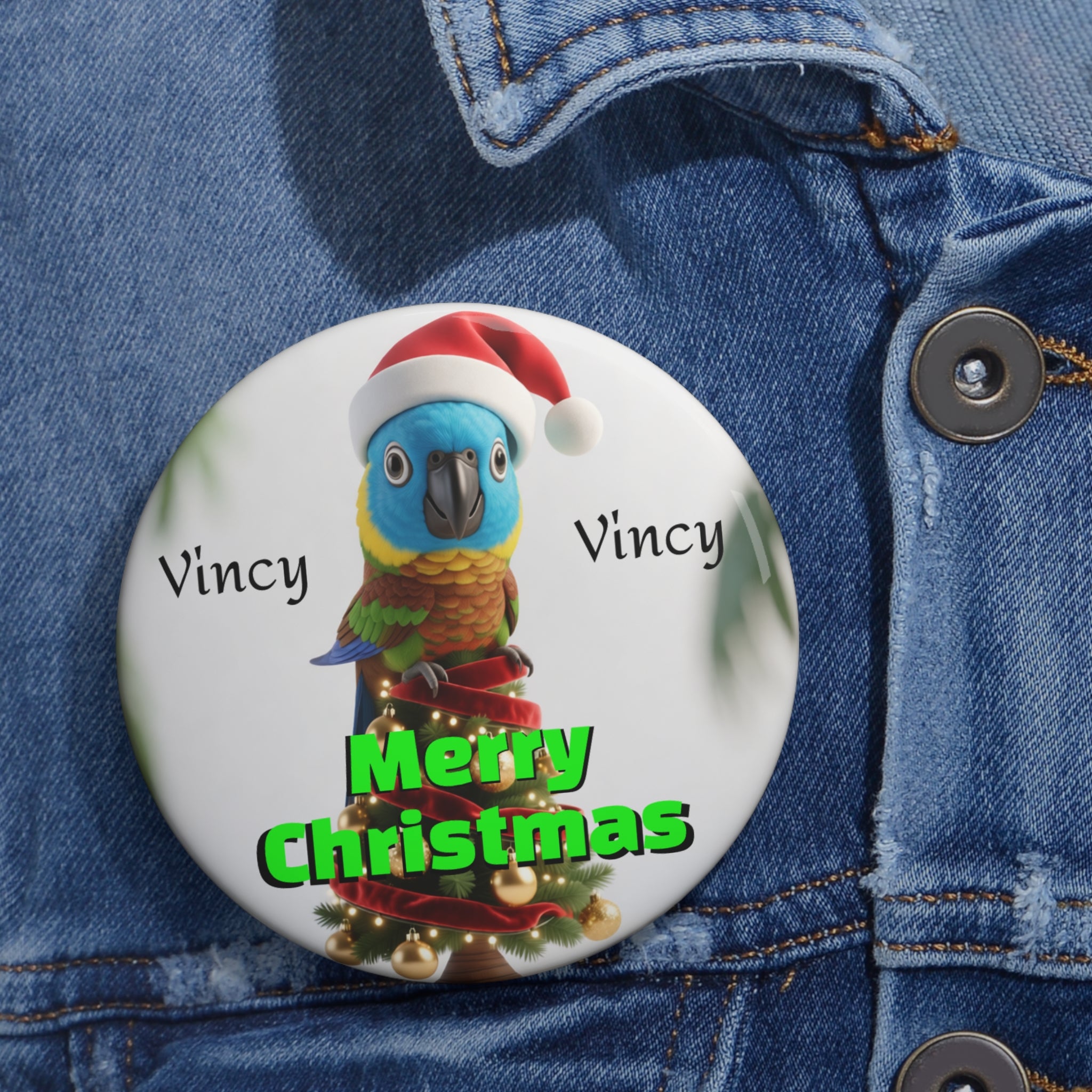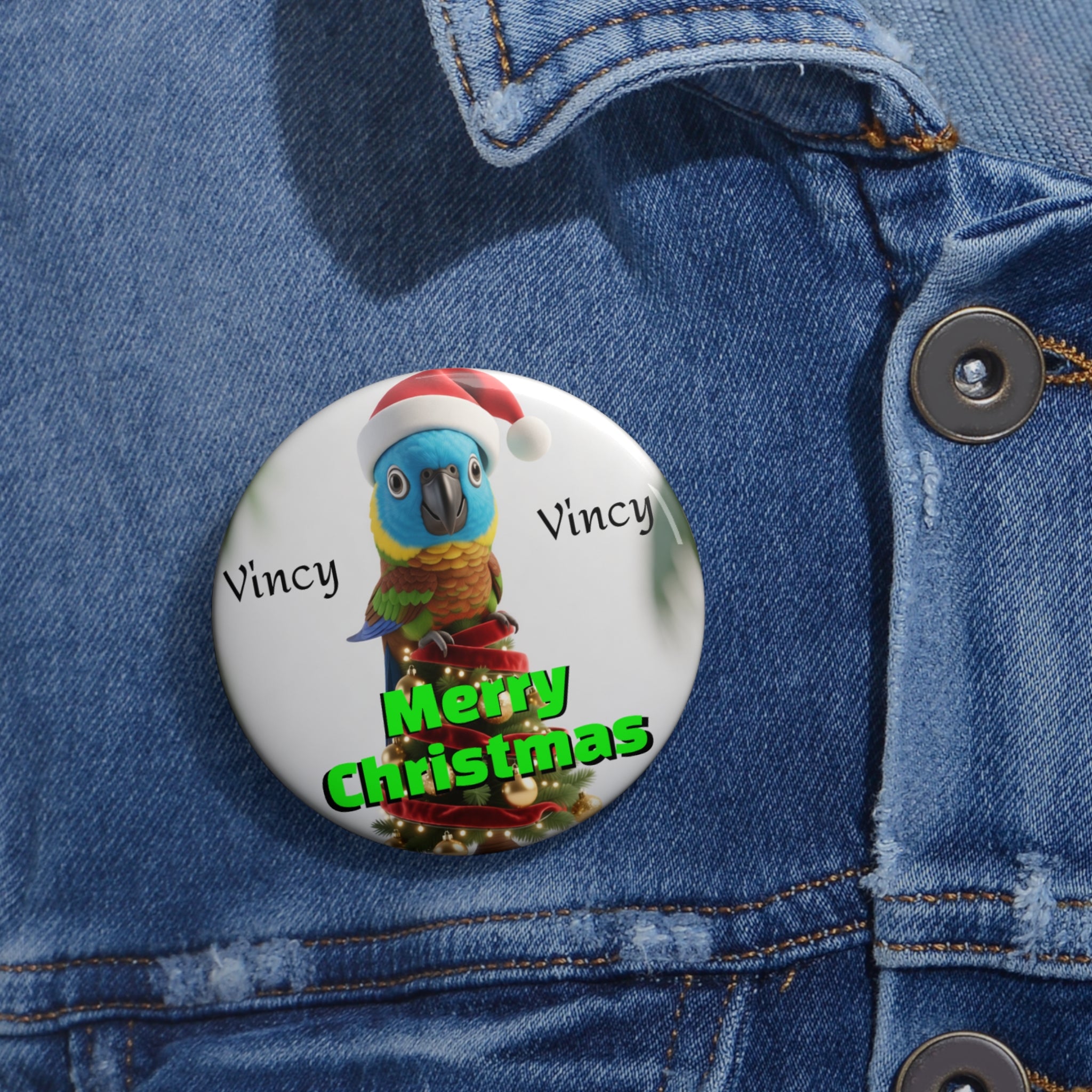 Add a touch of island cheer to your holidays with this adorable Vincy-themed Christmas pin! It features a cute parrot wearing a festive Santa hat, perched at the top of a beautifully decorated Christmas tree. The caption “Merry Christmas” sits proudly below, with “Vincy” written on both sides of the cheerful bird—perfect for showing national pride with a joyful twist.