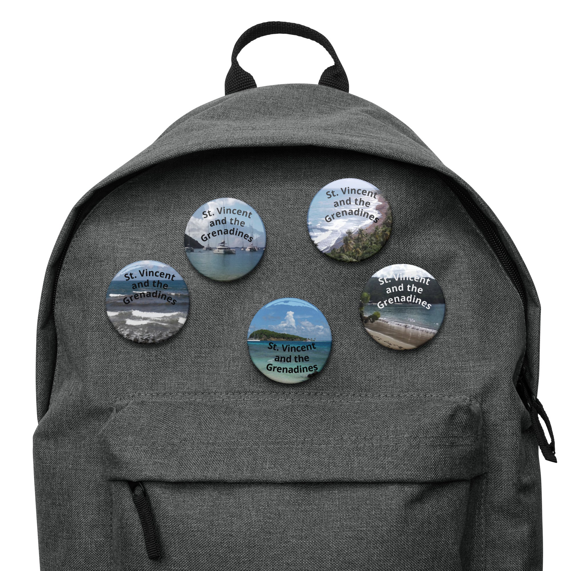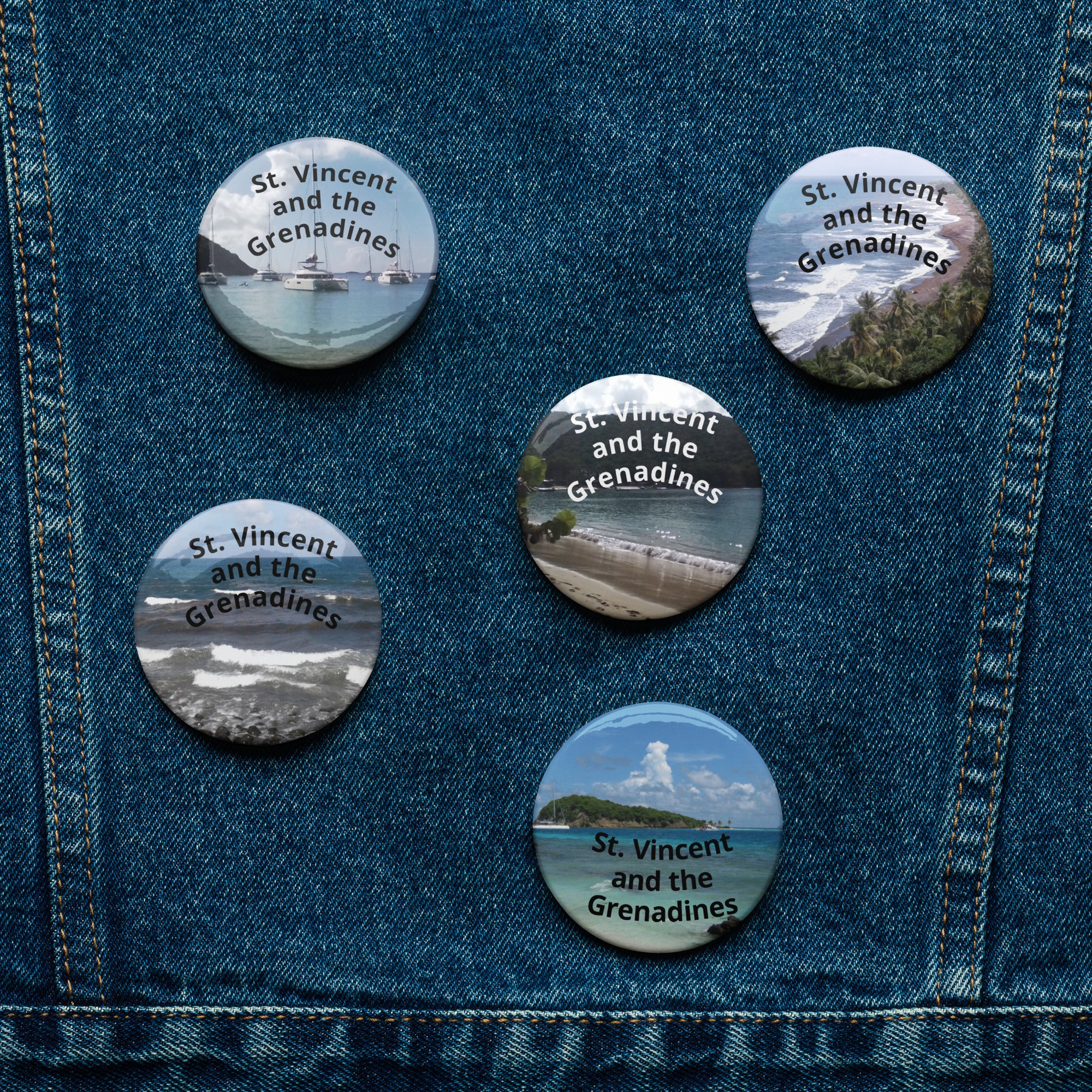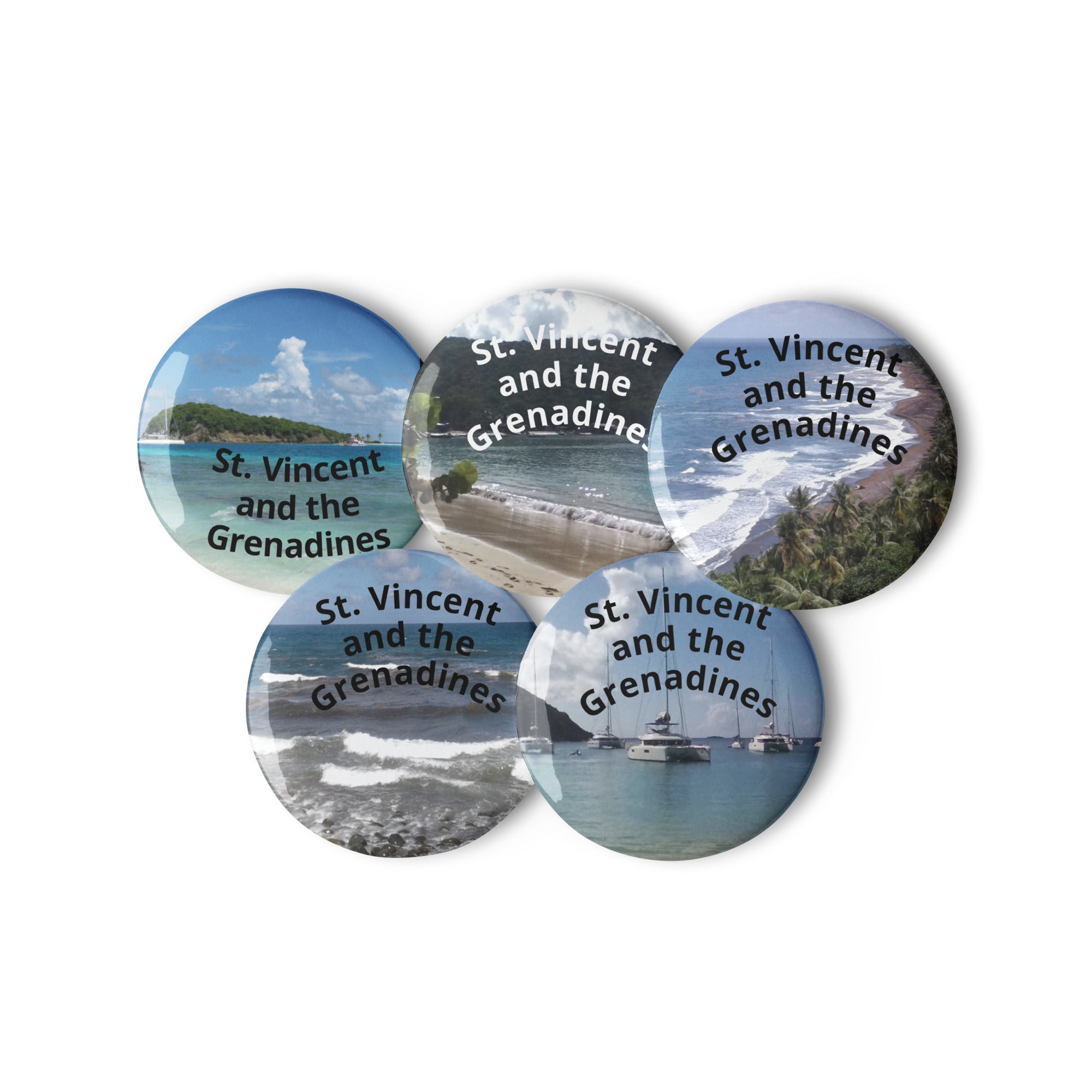Celebrate the beauty of St. Vincent and the Grenadines with this stunning 5-piece pin button set, each featuring a unique beach scene and the vibrant caption “St Vincent and the Grenadines.” From turquoise waters to sunlit sands, every pin captures a glimpse of the islands’ natural charm—making this collection perfect for travelers, island lovers, and anyone who carries SVG pride wherever they go.