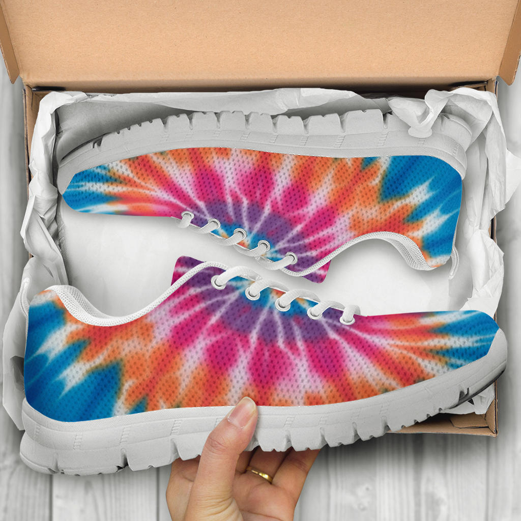 Bring a touch of sunshine and serenity to every step with these Tie-Dye Lightning Pattern Sneakers. Featuring soft shades of blue, pink, orange, purple, and white in a striking design, these sneakers perfectly balance comfort and style.
