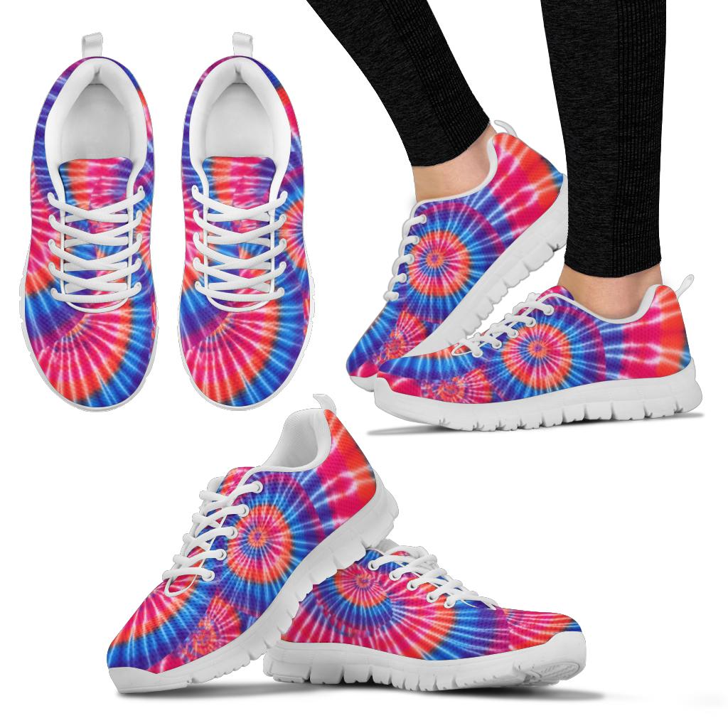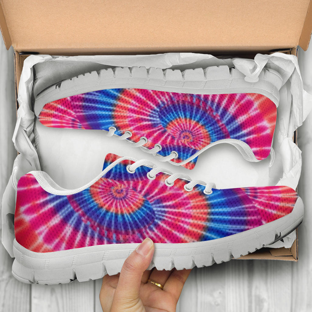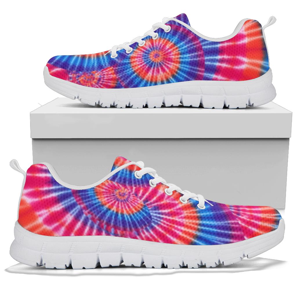 Step into bold, carefree style with these Vibrant Tie-Dye Pattern Swirl Sneakers! Designed with a stunning mix of blue, orange, pink, purple, and white in a dynamic spiral pattern, these shoes bring a pop of personality to every outfit.
